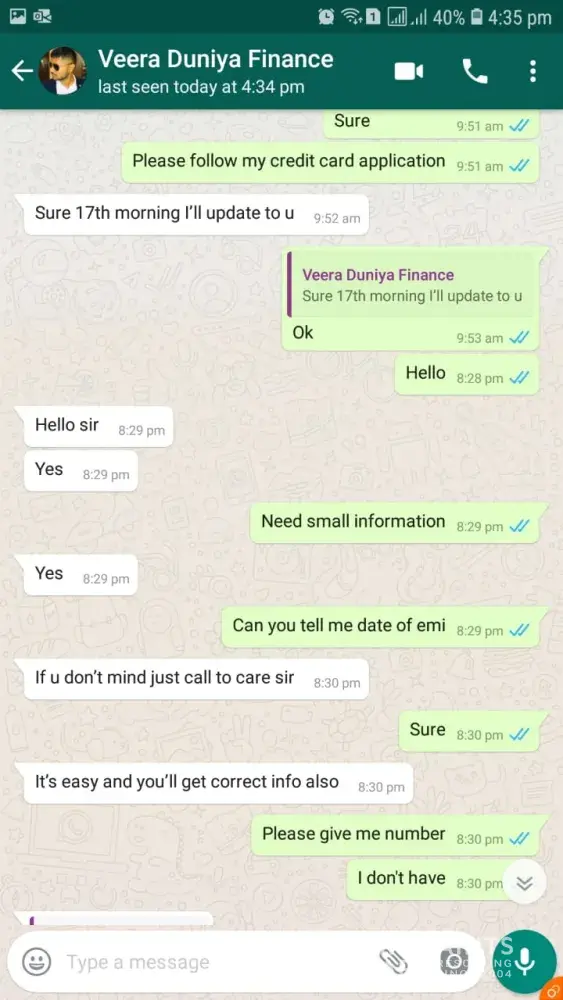 i also attached some screenshot of an executive conversation with me that he is saying you will get the credit card but today he called me and said you are not eligible for a credit card for the next six months.
