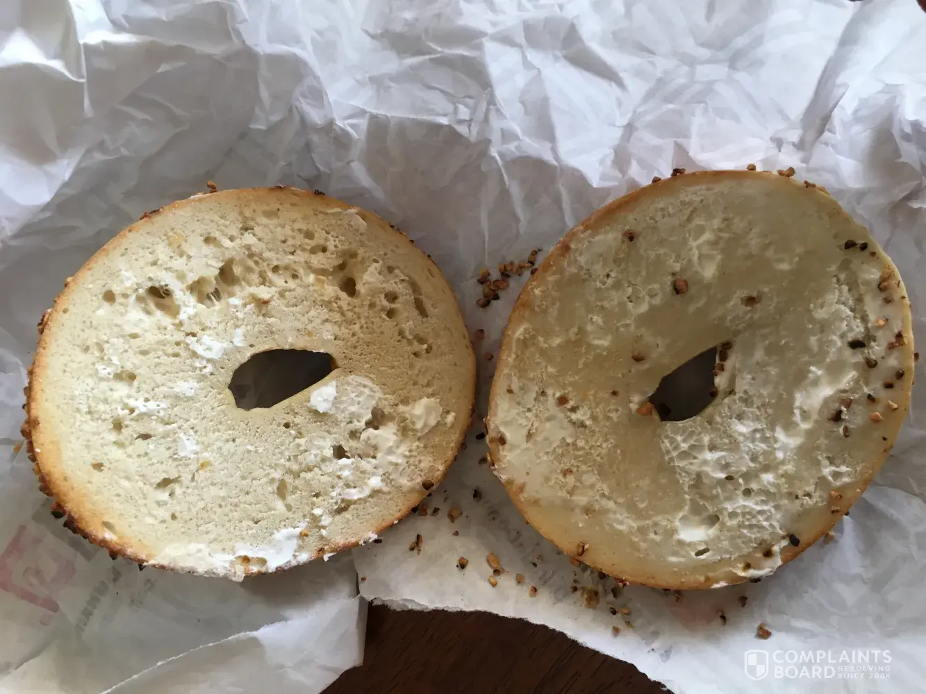 I went for a bagel with cream cheese because I am sick of dried out sausage.what I got was 8 ozs of cream cheese smashed into the center of my bagel . I spend anywhere from 2 to 5000 dollars a year here and this is not my first or only complaint but I don't have time to write a book. Now I'm told my complaint is to short to submit so I guess ramble ramble ramble ramble ramble ramble ramble ramble ramble ramble