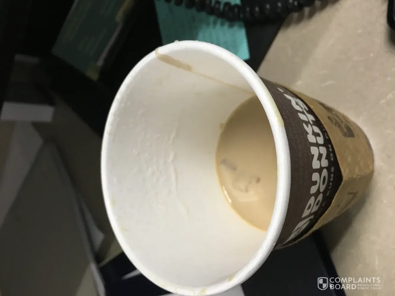 I am regular customer of DD in a branch near my house - 971, Route 1, Avenel NJ 07001. I own a DD perks card and I had a free beverage earned through points . I got it this morning and Half way through my drink I found stuff getting stuck in my mouth. When I opened the lid, I found weird things floating in my coffee and j have no idea what they are. I have taken pictures of this.