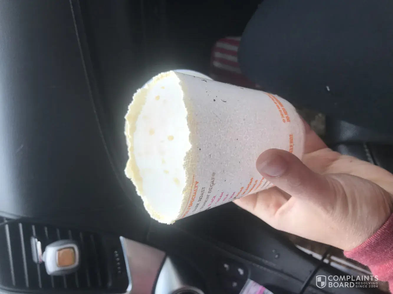 Today, sept 22nd at roughly 9am, I purchased a medium hot coffee from the Dunkin' Donuts on Crescent Road in Clifton Park, NY. I immediately left the store after receiving my coffee and went into my car. Roughly 3 minutes into my drive while attempting to sip my coffee, the entire top portion of the cup below the lid began to melt away from the body of the cup. The coffee spilled onto my lower legs and car floor until I could open the door to kick the cup out. I have photos of the cup if you require them. I also immediately went back to the store to let the manager know and to let her see th cup, she offered a refund for my coffee. Please contact me to discuss this serious matter at justine.[protected]@gmail.com. Thank you.
