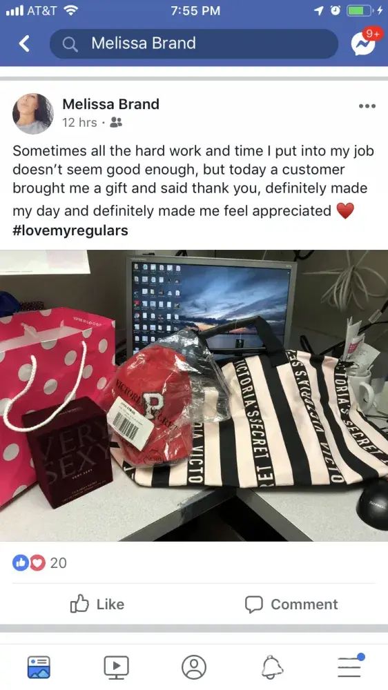 I thought it should be brought to the brand and franchise's attention that a manager named Melissa Brand, who works at a Dunkin Donuts in the Haverhill area (though her store may be in Meuthen or Lawrence) has been accepting gifts from customers. Most recently she accepted a gift that looks to be worth at least $75 of Victoria's Secret merchandise from a regular. She makes no attempt to hide it, and has frequently posted on social media about it. I believe this must go against some company policy, and it not should still be looked into. As a fellow restaurant manager, it is never right to accept gifts from regulars, as it usually gives way to giving away drinks/food. This only benefits the individual manger involved, and not the other employees of the store that work just as hard. Just thought the company might like to know.