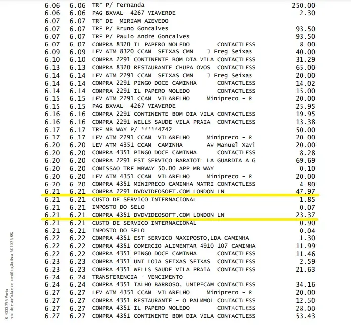 I hereby make the following complaint: on the 21st of June I made two purchases (dvdvideosoft youtube to mp3) on your website where I paid the amounts that are underlined in yellow on the respective bank statement, which is attached to this email.