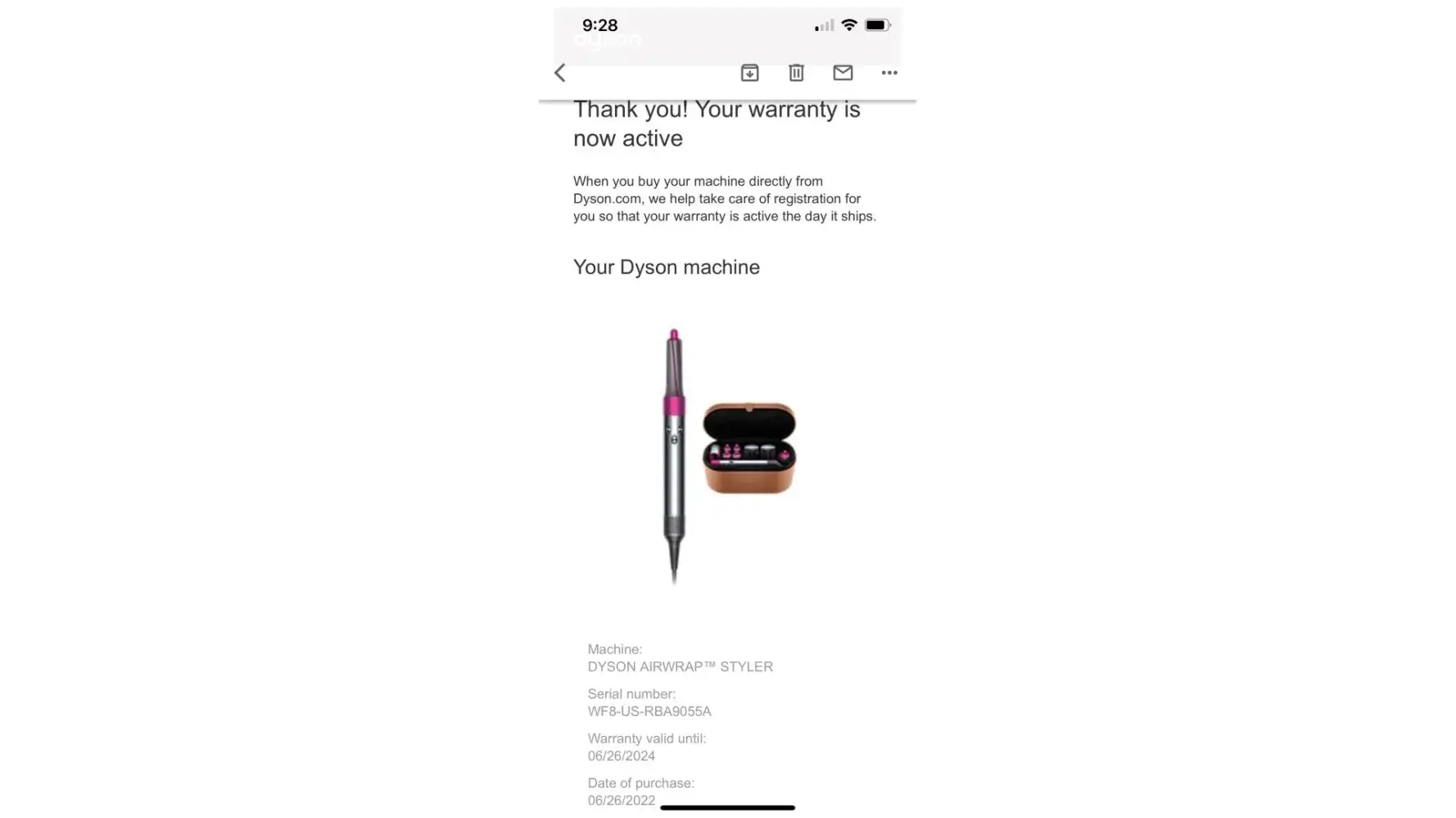 My mother in law brought me a Dyson airwrap as a present. She registered it when she received it and even spoke to customer service team to ensure it was all correct.