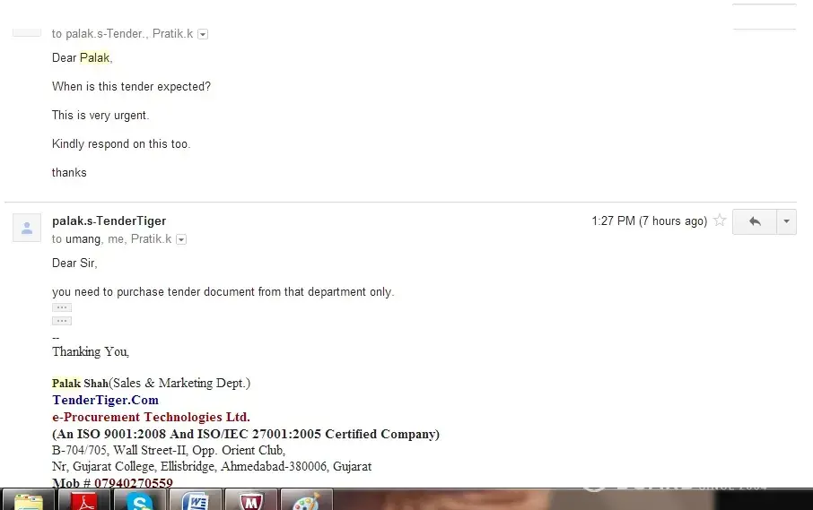 Tender Tiger Portal asks users to make 100% advance payments. They lie about the availability of Tenders on their site. This site simply collects newspaper advertisements & does not have any tender documents. Even though they claim to have the tender documents, in reality they are merely downloaded from websites. In most cases, they dont have tender...