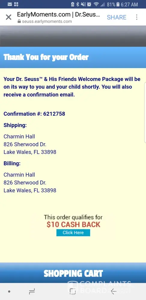 We wish you'd reached out to us directly instead of posting on this third party review site, then we would have been able to help sooner. When you signed up for your deeply discounted welcome package, you did review and agree to our membership terms but we're so sorry if you missed that. We'd be happy to help you with cancellation of your subscription, but we'll need additional information. Please either Facebook message us with your email address, email us at customercare@earlymoments.com or call [protected] and we'll help you right away.