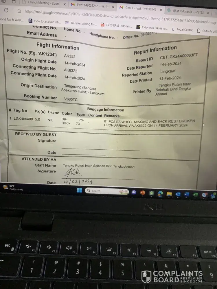 This is relation to my recent travel by Air Asia from Jakarta to Langkawi booked from Ease my trip. I received stroller with missing legs and wheels and broken back support. It was acknowledged by Air Asia and they provided me a PIR and also later co-ordinated on emails for Pics and other details. Later on they declined to process my Claim as they said it is booked by an agent and we shall accordingly ask the Agent to co-ordinate with airlines for the claim. I am attaching the emails and details for reference.