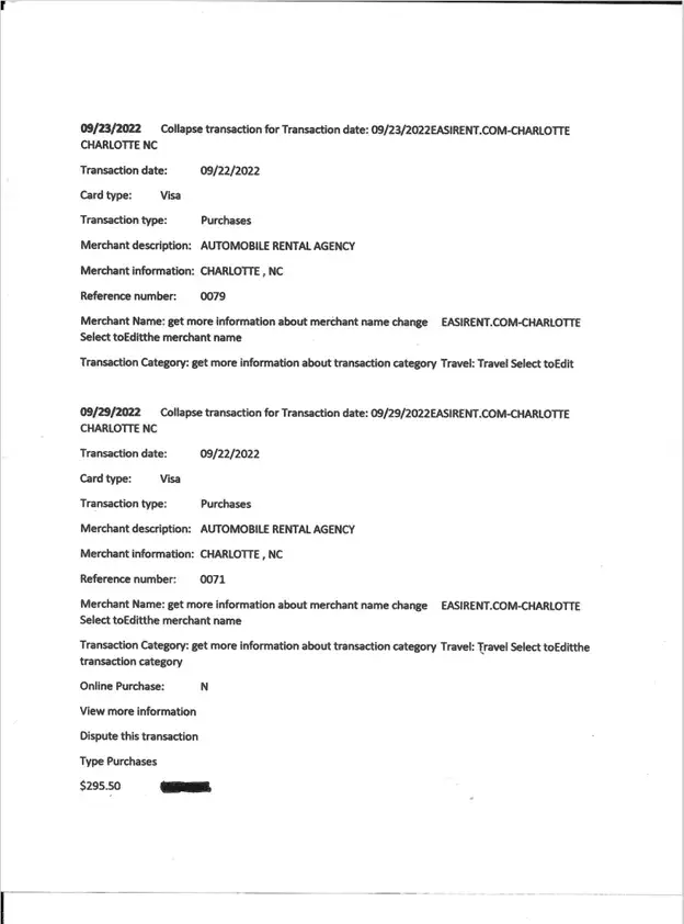 Desired outcome: Reimbursed for the unauthorized charge of $287.61 and a receipt for the car rental extension on Feb 24th to 26th.