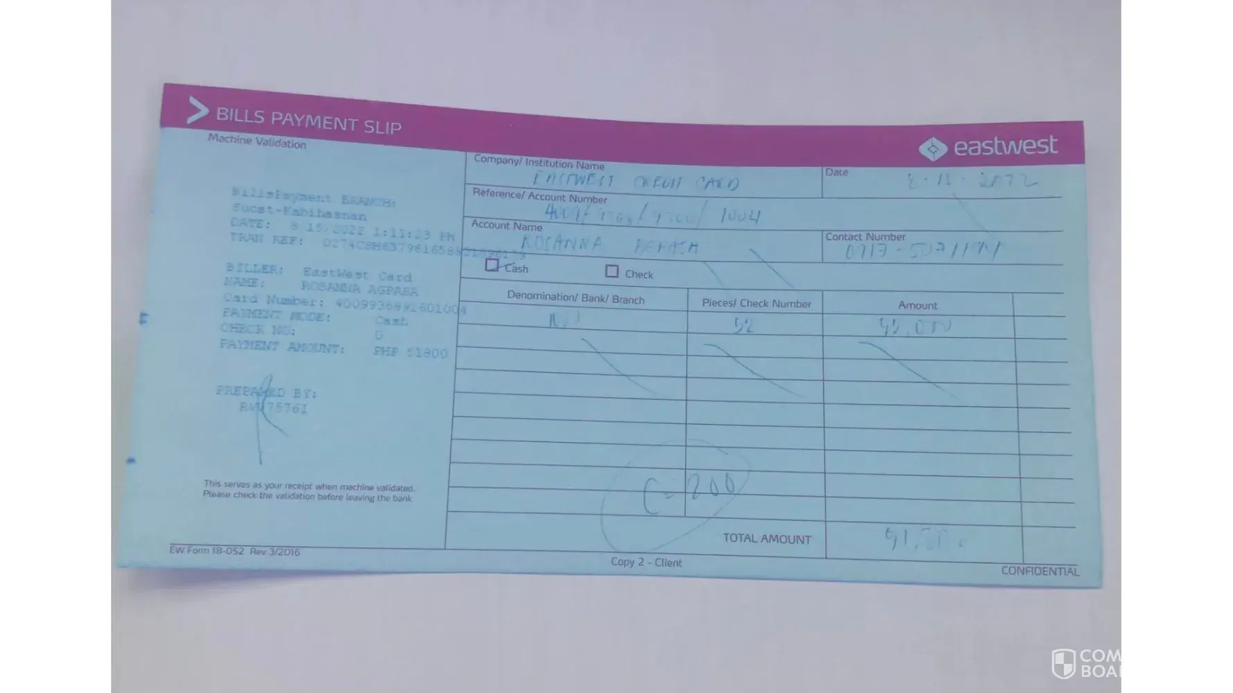 Last August 15, 2022, at around 1:11 pm, we paid the total amount of Php. 51, 800.00 to East west bank Sucat branch, just to clear my name in the system, with the agreement that we can have a copy of the clearance certificate within 15 working days... please assist us with this matter, since I have already paid the said amount and to clear my name, At the same time, I'd like to request a copy of the Clearance Certificate as a Proof.