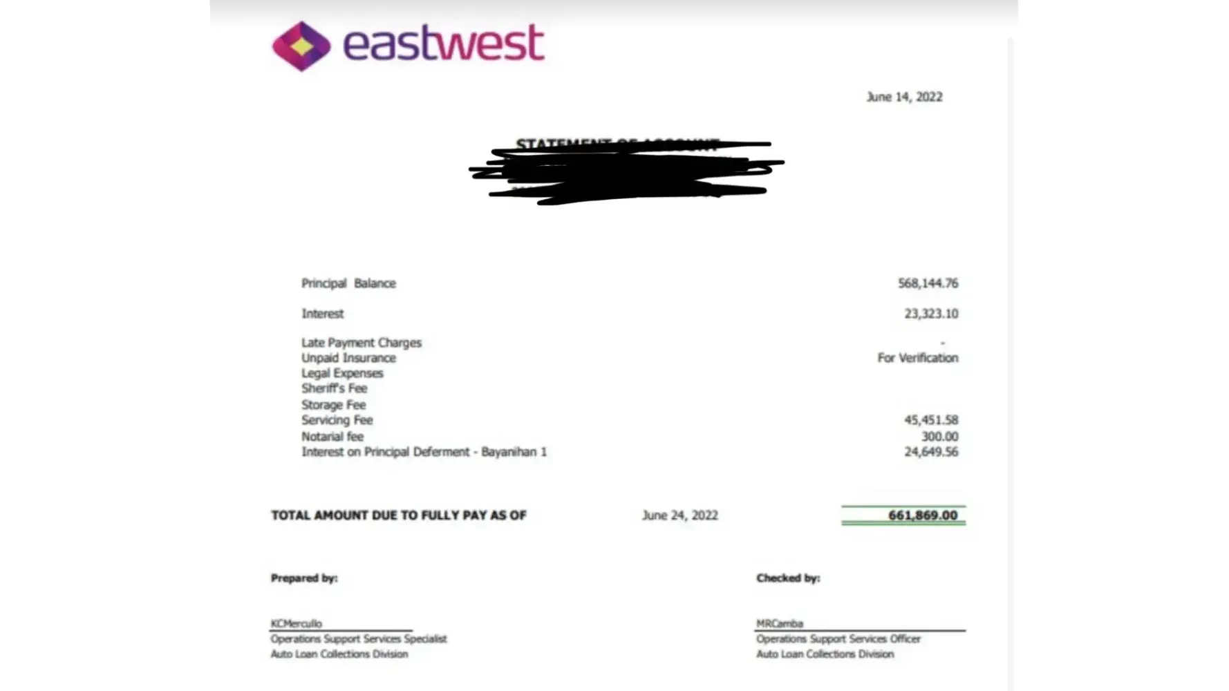 EastWest Bank (Philippines) Auto loan - soa pay off computation