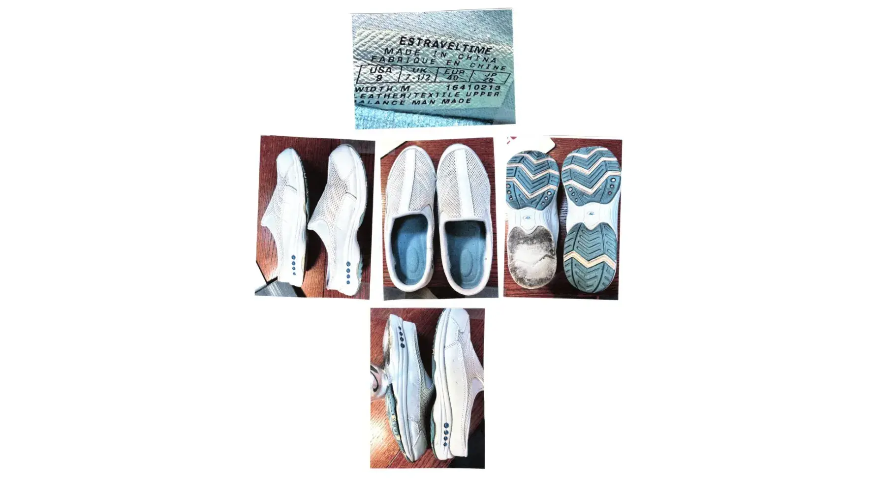 I slipped on my kitchen floor. I checked the floor and it was not slippy. I turned over my right white/blue Traveltime shoe and the heel was missing. I could not find it anywhere. Also, I noticed the sole was partially unglued plus the left shoe's heel was also becoming unglued. This has not been my experience with prior purchased Traveltime shoes, which are so comfortable.