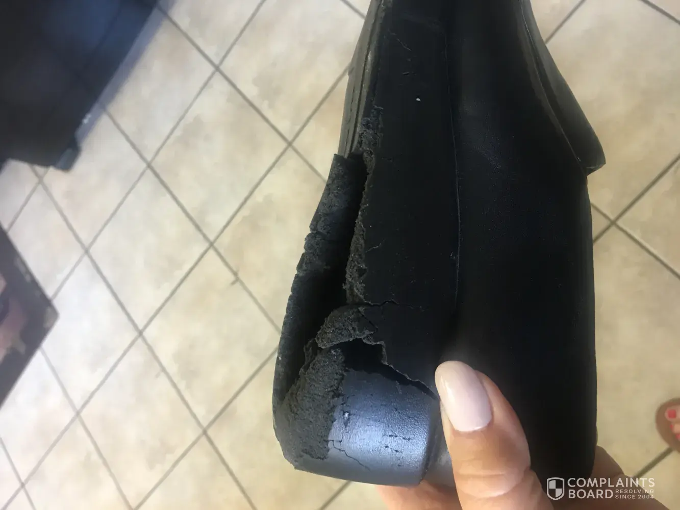 Same experience here. After wearing twice, the second time at my husband's funeral, the left heel disintegrated. I was lucky that it did not cause me to fall:(