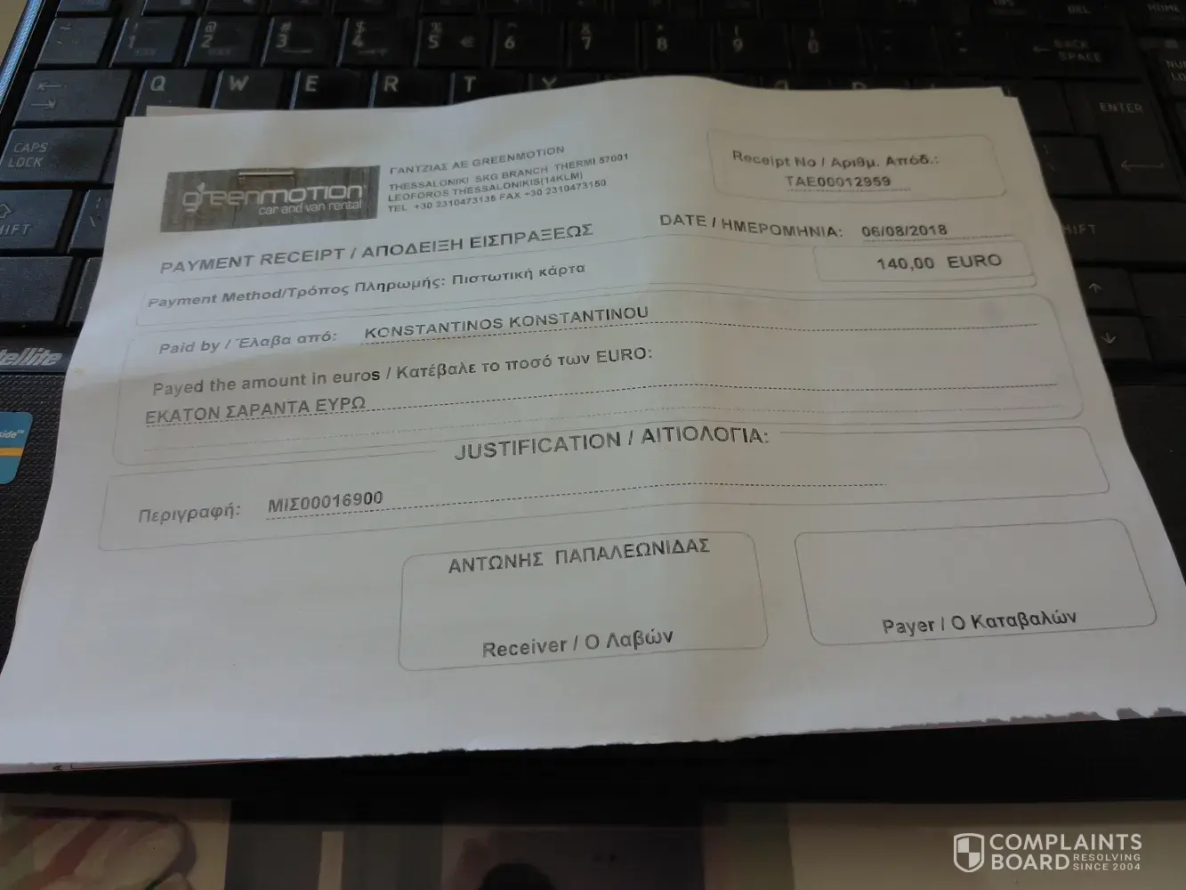 Dear Sir/Madame, I am writing to complain about the extra car insurance (140 euros)the car hire company called "Greenmotion" in Thessaloniki made me pay even I showed them the Confirmation of my Damage Refund Insurance -G001CYPGR387914910. Otherwise I could not rent the car. Actually, on 1st of August 2018 I booked a car rent with your company with booking number: GR387914910 and confirmation number: CTR-[protected] in the name of Konstantinos Konstantinou with dates of renting the car 6th August-13th August 2018. My email is: andri_demetriou@yahoo.com Below I'm attaching the payment receipt of the car insurance. What I am asking for is the full refund of the extra car insurance
