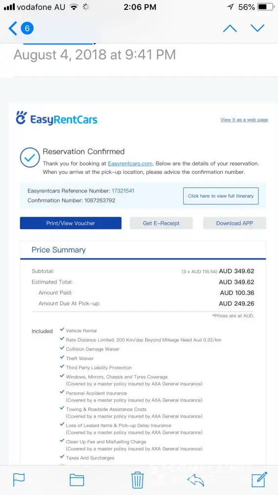 So I rang car hire desk they answers and said they didn’t have a booking and to go back to easy car they said could hire me a car but would have to pay and it was double the price !