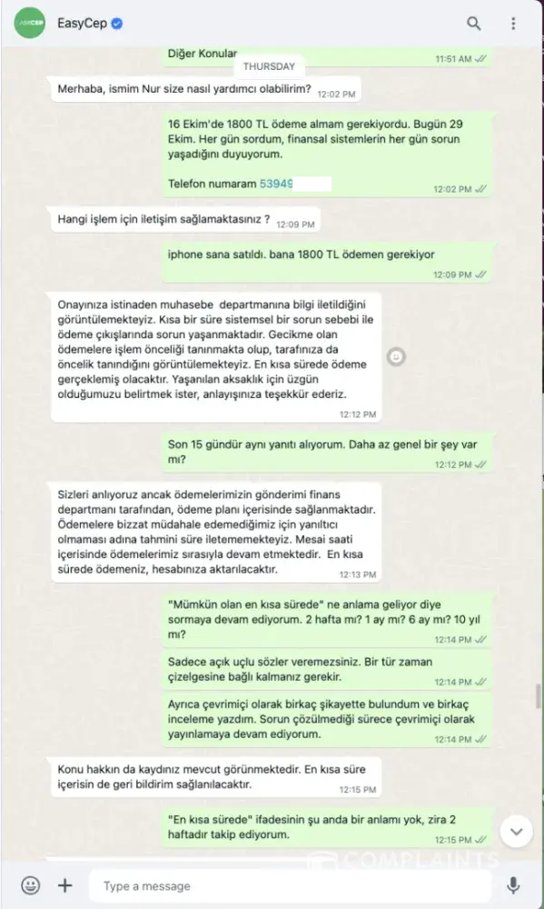 Onlara iPhone 13'ümü sattım ve Amazon'dan bir iPhone 15 Pro aldım. 30.000'i peşin ödediler, ancak 1 ay içinde ödenmek üzere 1.800 TL tuttular.