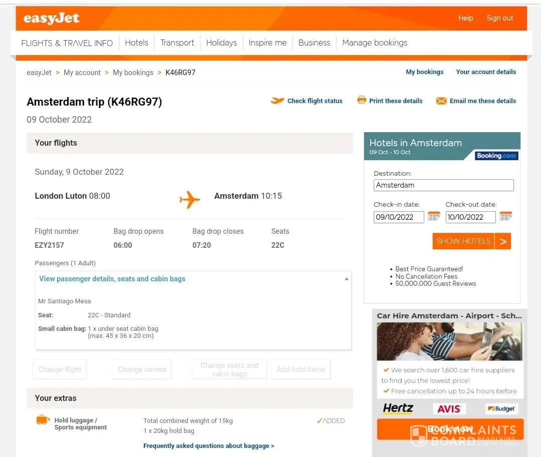 Back in the beginning of October, I brought my friend over to travel to London where I am based and paid for an easyJet ticket.