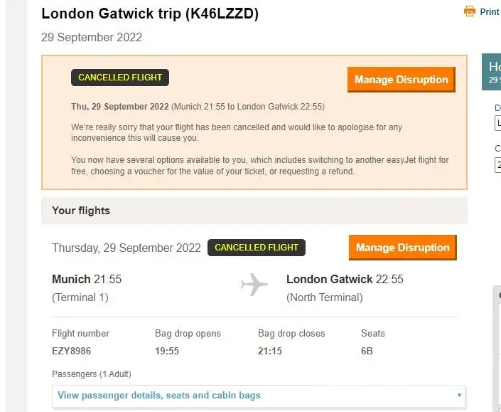 Easyjet - cancelled flight