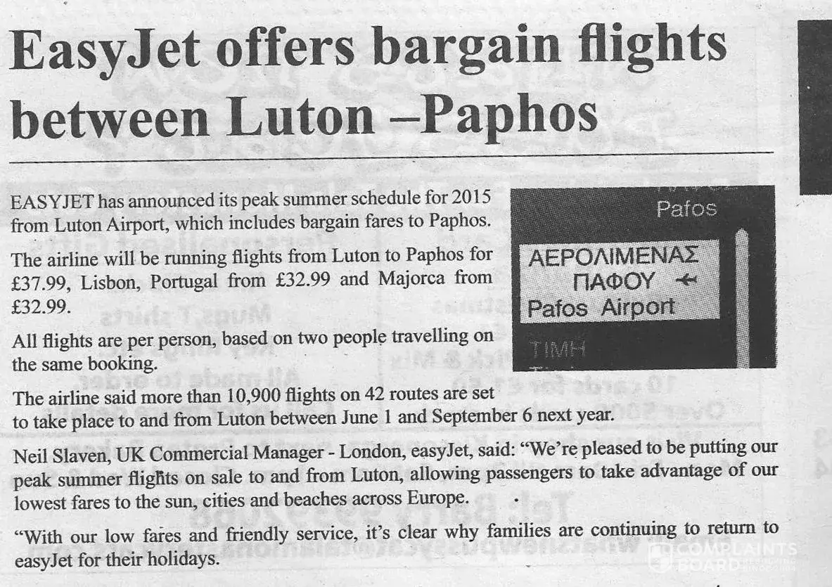 Recently in an article in a local newspaper in cyprus easyjet stated that for