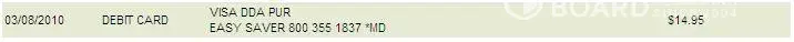 03/30/2009 Debit Card Transaction EASY SAVER [protected]/28EASY SAVE $14.95