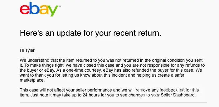 I did nothing wrong. I shipped the exact product pictured in the Ebay post I created and packaged it perfectly well.