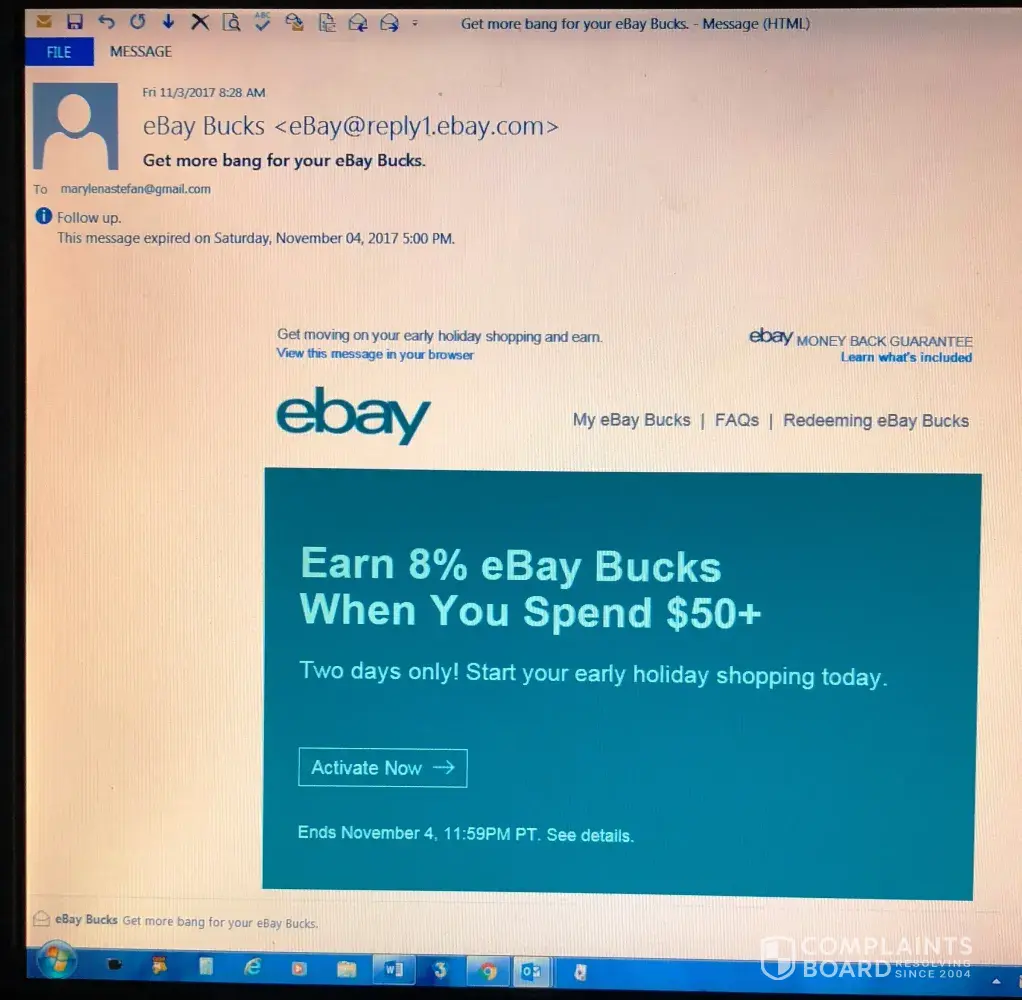 ebay ebucks offer not granted - misleading ad