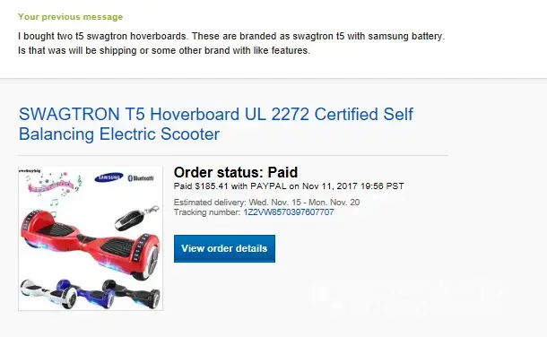 I ordered two SWAGTRON T5 Balance Boards from an ebay seller evebuybig. The problem is that when the products arrived they were not what was describe in the seller's description were for SWAGTRON T5 Balance Boards.Â