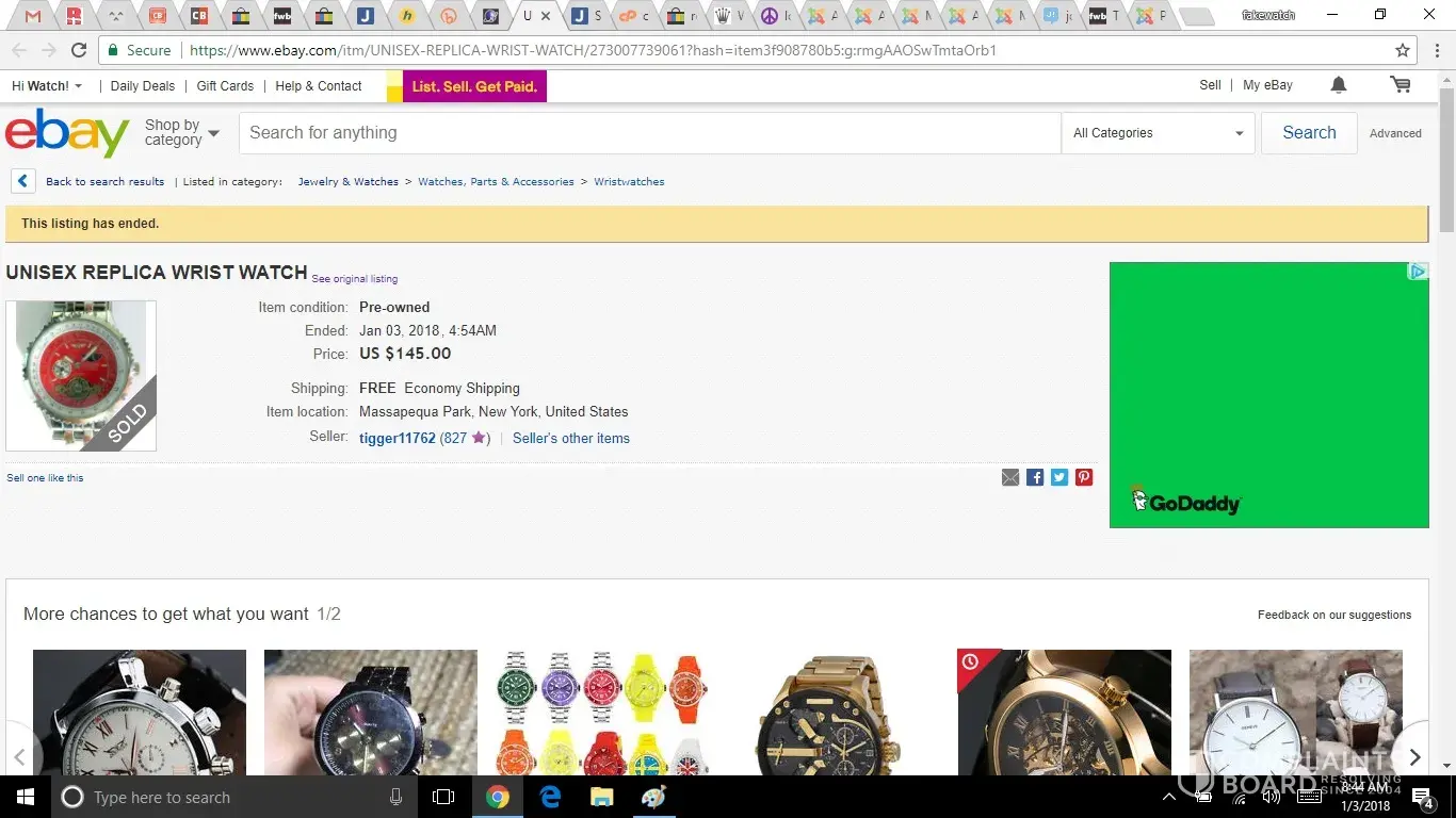 UPDATE on tigger11762 - This illegal replica Breitling watch has been SOLD. smh - screenshot attached as proof for law enforcement and attorneys for the victim