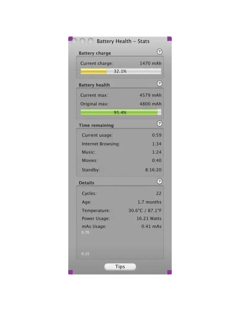 the new battery is 3 weeks old and all that time on getting a new one DONT BUY FROM THIS CO. ONLY BUY FROM THE APPLE STORE ... MY APPLE BATTERY LASTED 4 YEARS OVER 5000 CYCLES THIS ONLY HAS 22 CYCLES