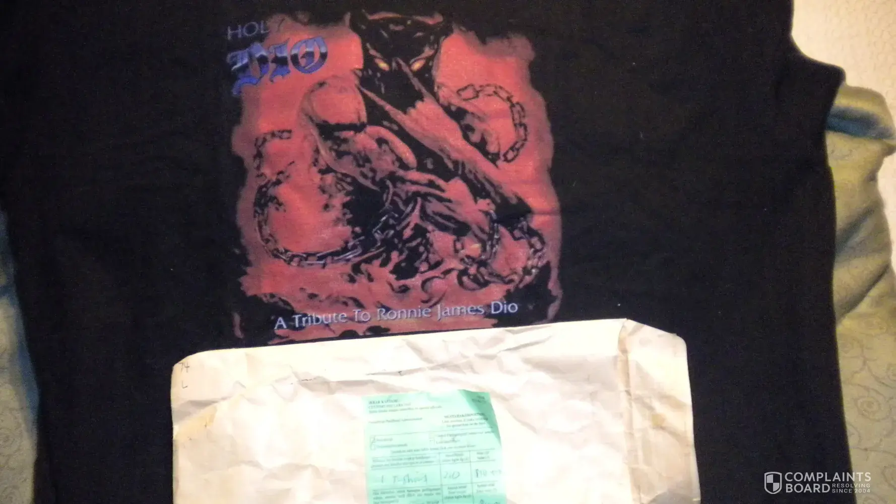 UPON OPENING THE MAIL I WAS SHOCKED THAT THE 7" INCH BY 7" INCH ART PRINTED ON THE SHIRT IS ALSO A BAD MISREPRESENTATION OF YOUR POSTED PICTURE ON EBAY AS THE COLORS ARE DRAB NO WHERE NEAR THE BRIGHT COLORS SHOWN IN THE PHOTO ALSO AS WE ARE ALSO PROFESSIONAL SILKSCREENERS WE FIND THIS KIND OF BEHAVIOR REPREHENSABLE AND WILL BE FILING SERIOUS FRAUD CHARGES WITH YOUR COUNTRIES DIPLOMATS AS WELL AS U.S.GOVERNMENT OFFICIALS SO I HOPE IT WAS WORTH ALL THE TROUBLE YOU HAVE NOW CAUSED BY YOUR FALSE ACTIONS IN OTHER WORDS HAD THE SHIRT HAD THE PROPER SIZE PRINT ON THE CHEST ASIN THE PICTURE I WOULD NOT BE FILING ALL THESE SERIOUS COMPLAINTS TO MAKE SURE YOU UNDERSTAND! THIS IS YOUR OPPERTUNITY TO RESPOND!