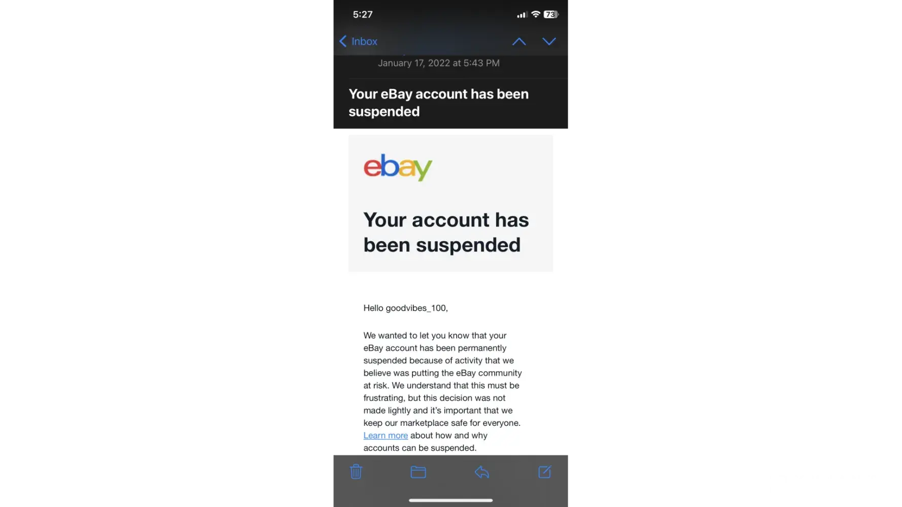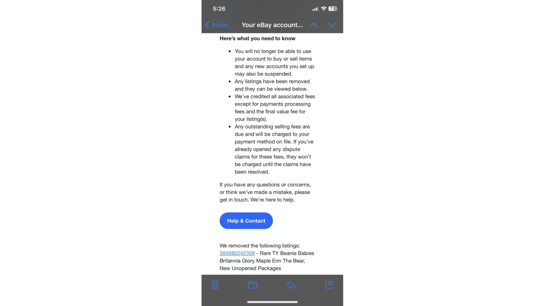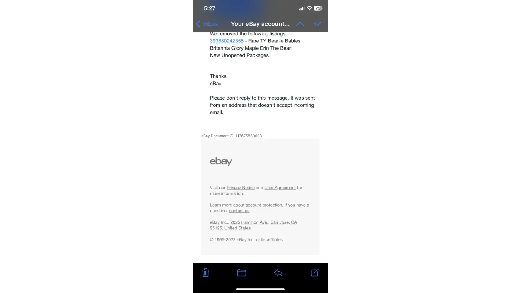 I created and verified my first ebay account on january 16, 2022 and I just listed my first item for sale which was a rare ty beanie babies britannia glory maple erin the bear, new unopened packages. But unfortunately on january 17, 2022 ebay permanently suspended my ebay account by claiming that (as shown in the photo) "activity that we believe was putting the ebay community at riskâ€. So I am very confused about what would make ebay think that just me creating, verifying and listing my first item for sale on my ebay account would put the ebay community at any risk? So i've contacted ebay support call multiple times, where they all just repeat exactly what I received in my email address about my suspended ebay account and don't provide any specific reasoning for the permanent suspension on my ebay account and just immediately hang up the phone on me.