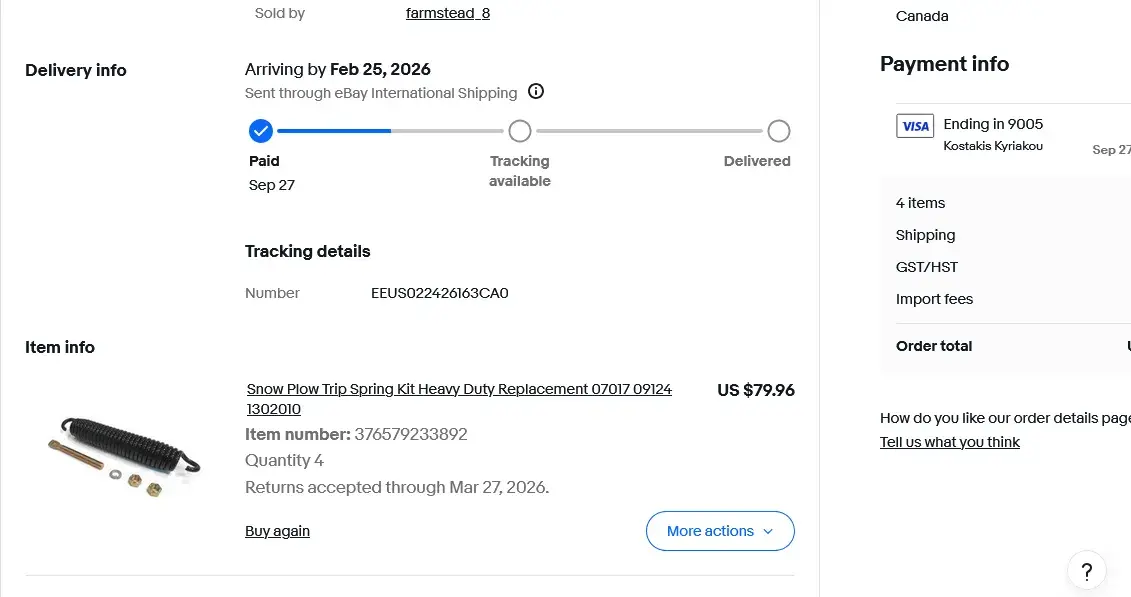 So, I gotta tell you about my recent experience on Ebay.ca. I was on the hunt for a car part that I couldn't find in my local area. I finally found one from a vendor in Europe and despite the fact that it was gonna take over a month and a half to get to me, I went for it.