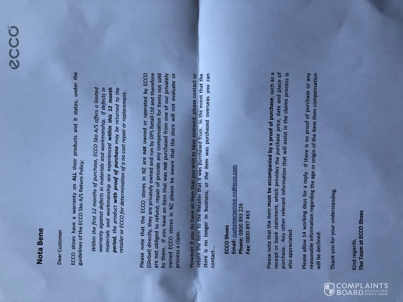 Please advise on how Ecco will resolve this problem, why it happened and how to prevent in the future. Thank you.