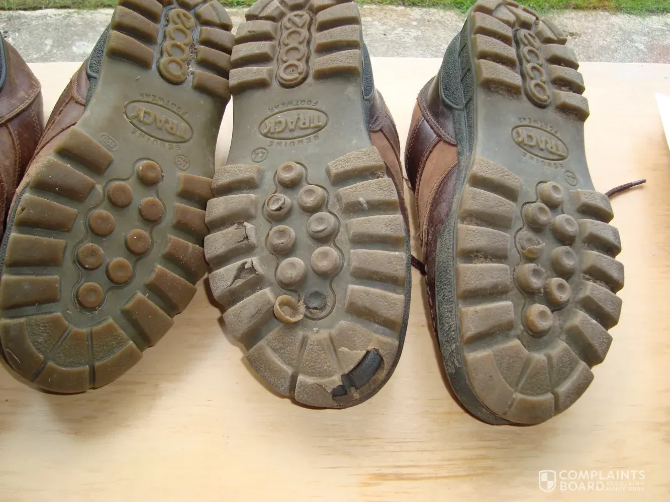 I've bought four or five pairs of Ecco Track shoes over the years because they were especially cushioning for my disabled ankle. That the soles finally started to break up has been hardly surprising considering the punishment they endured, but my latest pair were not nearly as robust. The plastic soles literally ripped open. Ecco don't offer a repair service, and I couldn't prove when they were purchased as they were a gift, but Ecco recommended a shoe repairer who, surprise-surprise, features a resoled pair of Ecco Track shoes on its home page! Has the manufacture moved east to save costs, and have standards lapsed? The photos show my new pair of Eccos on the right. The pair on the left have seen a good year and a half more wear! From now on I'll be looking elsewhere.