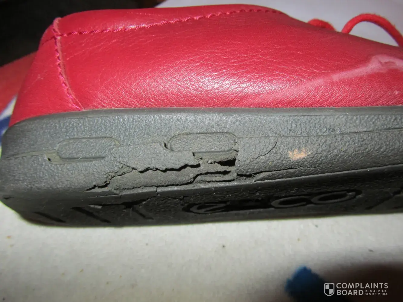 I normally am fond of Ecco shoes - having bought many pairs over the years - last year, a pair of sandals had the sole literally "chunk" apart - crack and break apart. I sadly threw the shoes out thinking they had reached the "end" of their life span. Yesterday, the very same thing happened on another pair of Ecco sandals - a chunk of the right heel came out and left a pulverized and chunky mess on the floor - yikes - glad I didn't turn my ankle!