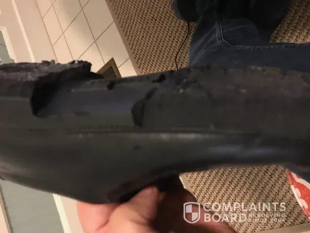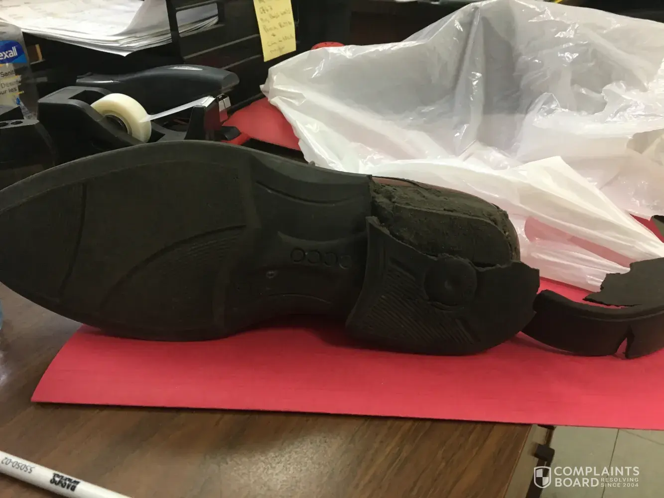 Desired outcome: Coupon for new pair, sole replaced or reimbursement