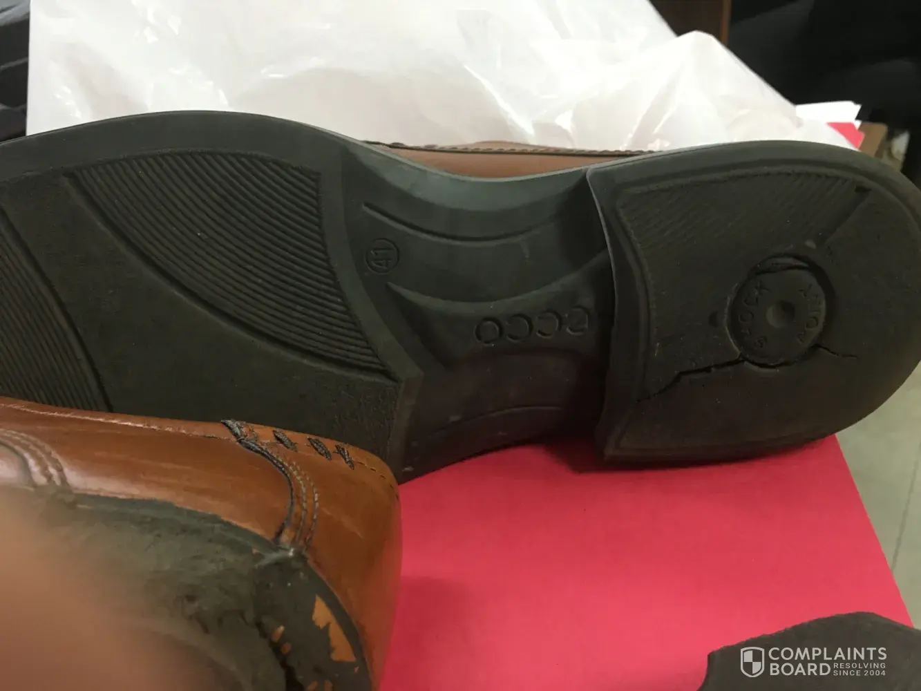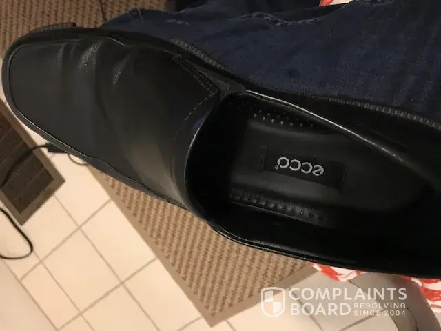 I would like to file a complaint about a pair of men's dress shoe that my boss bought 3-4 years ago in US. these shoes are hardly worn, as my boss owns 4-5 more pairs of ecco shoes. Few days ago while he was wearing these shoes for first time in months, the heels of these shoes compeletly disintegrated, which is a big surprise as they are hardly used. He is extremely upset with this situation and would like a replacement for this item. your prompt resolution of this problem is greatly appreciated. (he does not have an invoice anymore)