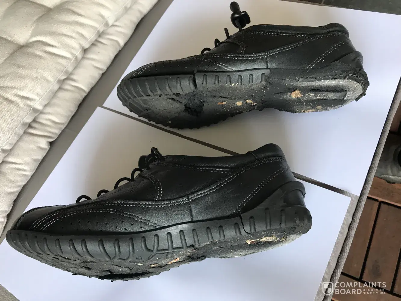 Soles of both Ecco shoes disintegrated during the same wearing, leaving a trail of black rubberized material everywhere I stepped.