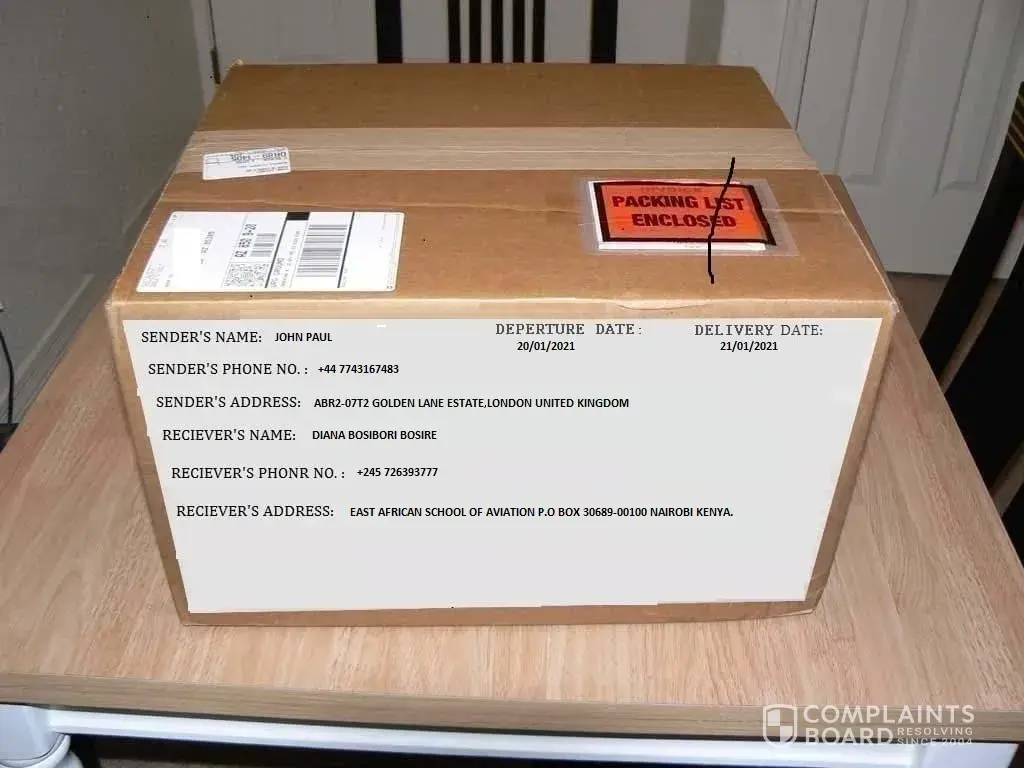 My parcel was sent by my friend on 19/9/2021and arrived in Kenya at 8:30am today. I received a call from a gentleman and asked me if I was expecting a parcel from Daniel Frank I told him yes. He told me to pay the 10, 000if not he will return back to the sender.