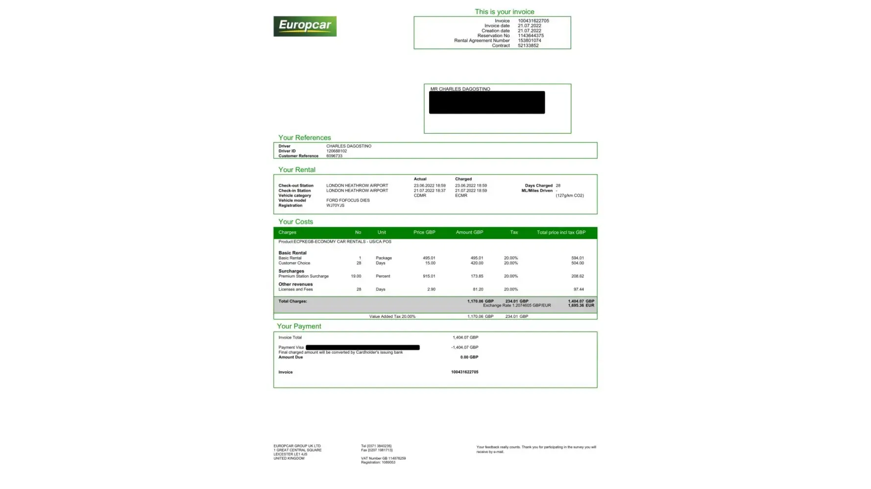 Your EconomyCarRentals booking EC0A9B4E is confirmed - London Heathrow - Jun 16, 2023 18:30