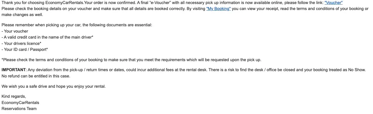 Thank you for choosing EconomyCarRentals.