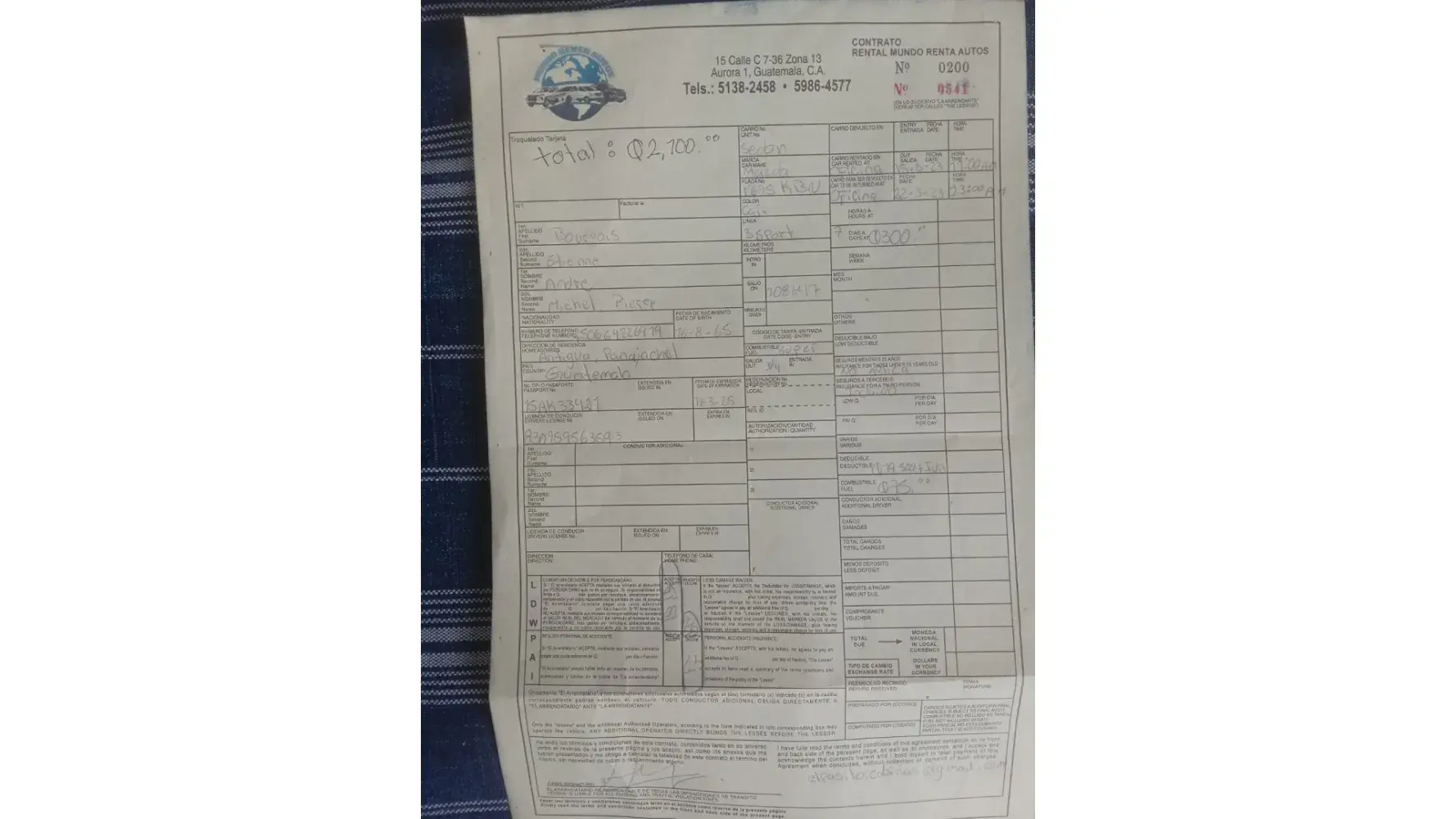 Please be informed that sometimes, as per our agreement, at he first sight of the client, our employee can decide to not rent provide the vehicle.