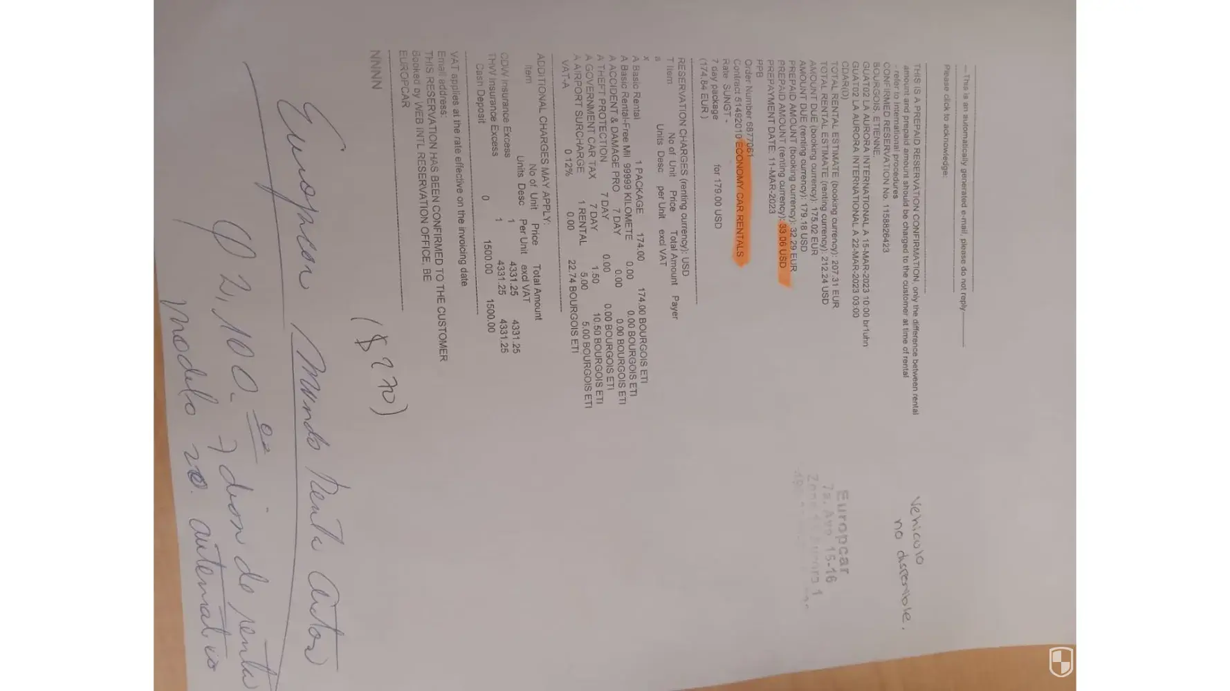 I paid for the additional 3rd party (although it was paid paid in my booking (voucher). I even have a separate email at the time of booking from Economy car rental that i paid for "Full Insurance".
