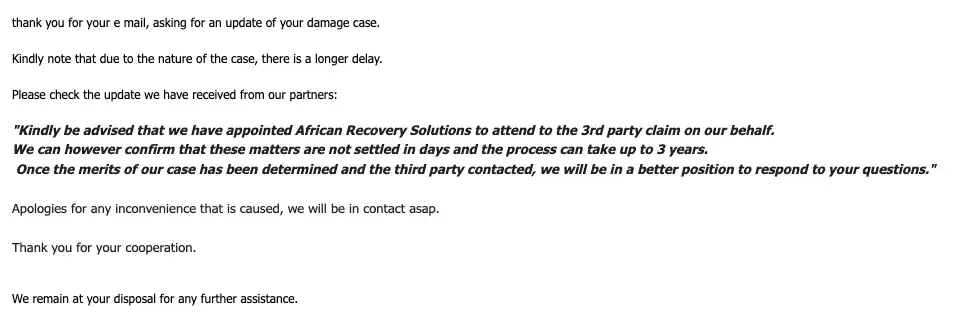 we had to find another company and had to pay more than initially with you.