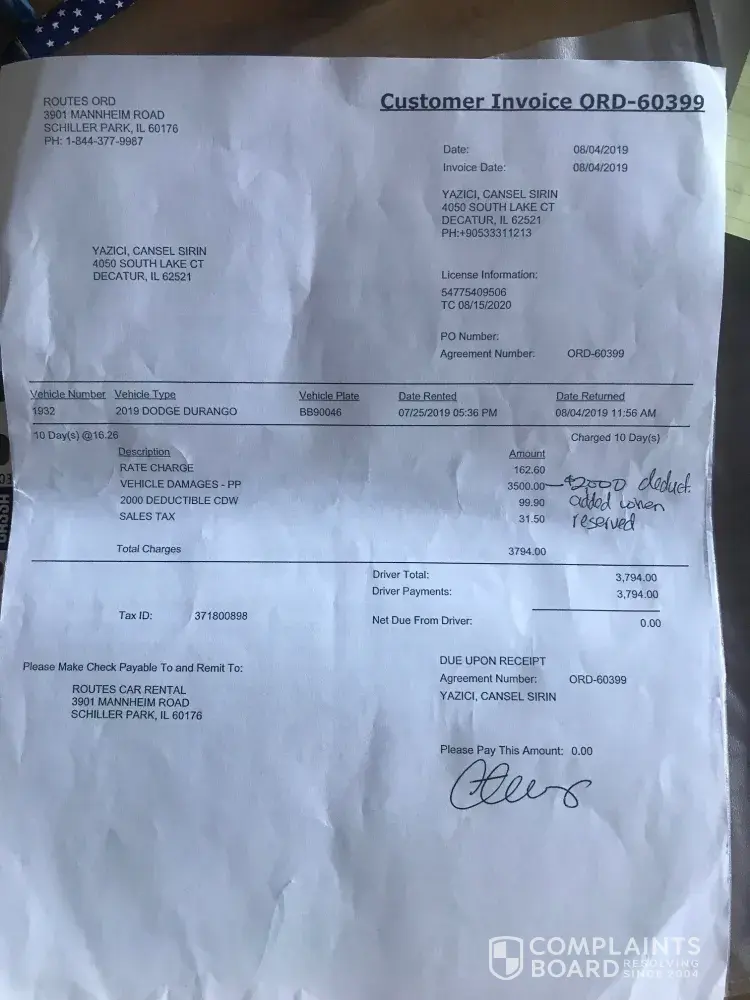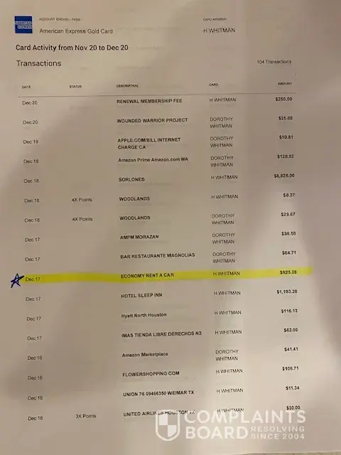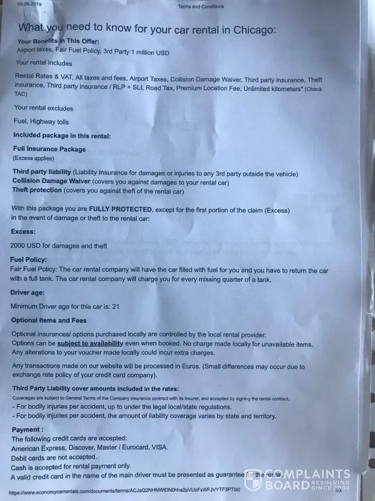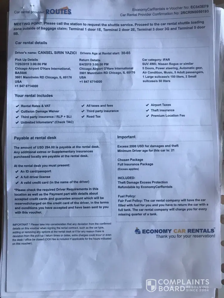 Read full complaintCharged my credit card did not rent a car