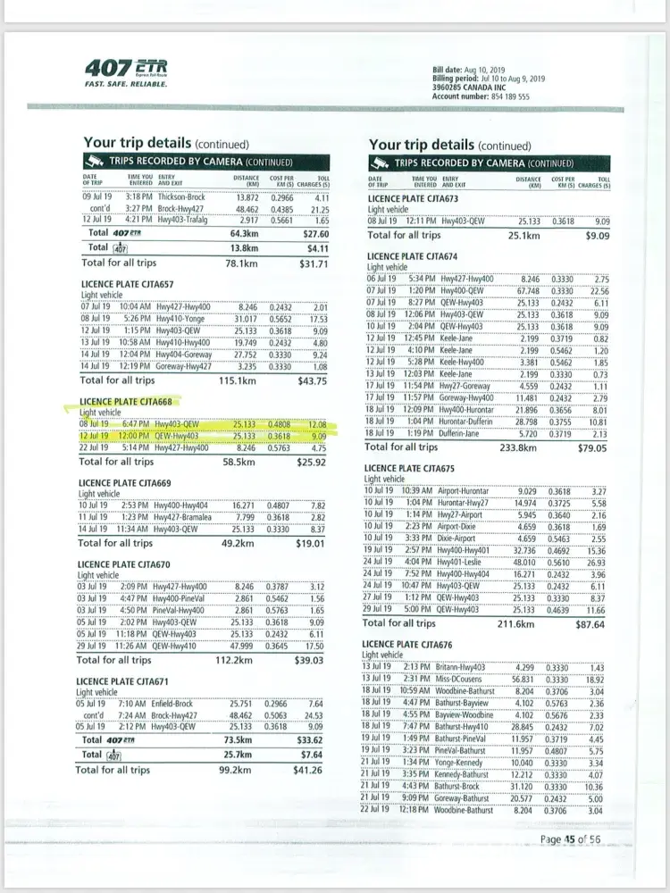 Read full complaintextra charges for tolls.