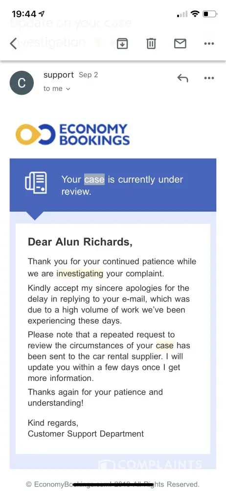EconomyBookings.com Car rental refund