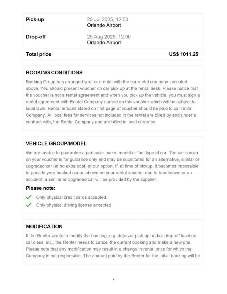I booked the reservation in January. I was not aware of any insurance restrictions until I received the voucher in July. The day before the rental. I was only told at time of rental. Never was I told about penalties for out of state use until I turned in the car. I never received a rental agreement. Your booking receipt said only that insurance was at my own risk. Not a forced requirement as it was covered by my credit card company. It was well after my ability to cancel the booking. Your reservation process is very misleading as all these requirements are not mentioned at all until you receive voucher. There are hundreds of poor reviews, clearly others feel the same way. The are deceptive sales practices and misleading at best or out and out fraud. I will be filing a report with the State attorney general and better business bureau. This is a scam.