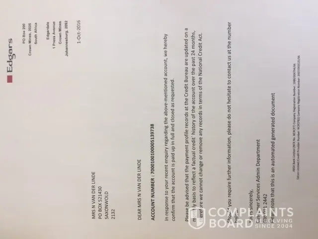 I have a letter stating my account was closed with a nil balance in October 2016. Subsequently I have been hounded with phone calls, sms's and threatening letters. Each person who calls me understands but no one phones me back with clarity. There is no consistency regarding how much I supposedly "OWE". Check the messages you've sent, the amounts differ. Currently R368.46. I'm sure you have spent more on phone calls/messages/time than this. Enough BULLYING tactics. Do your job and fix this issue.
