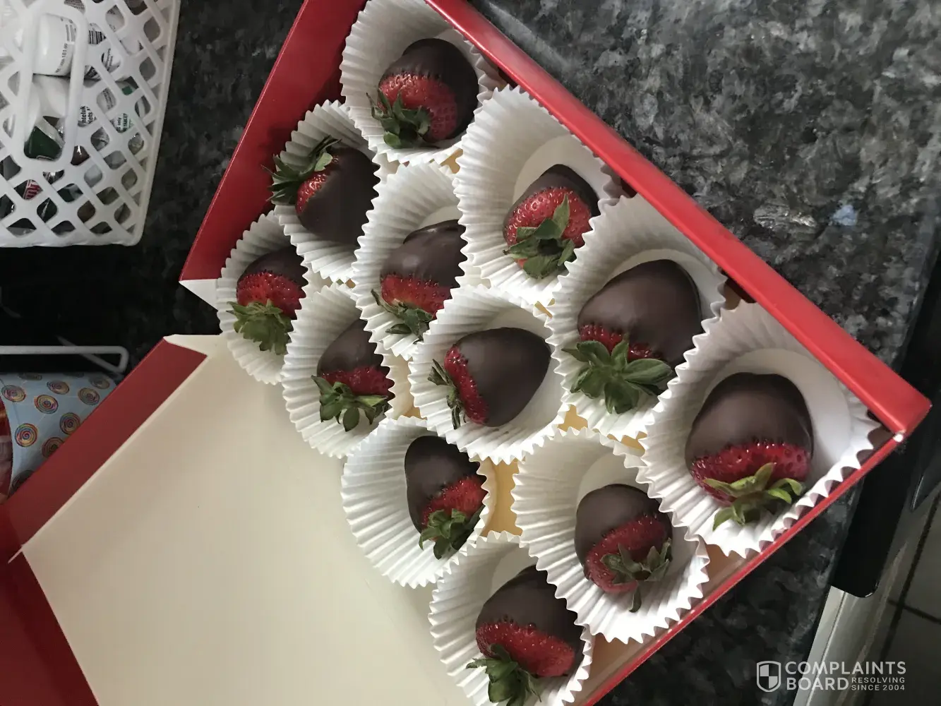 I ordered the deepest sympathy fruit flowers (12 chocolate strawberries). Upon deliver the delivery person promptly placed the box side ways on my porch and didn't ring door bell.