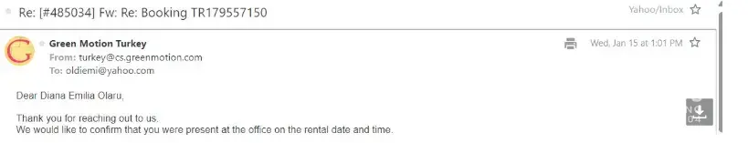 They have also provided different excuses and fake information even to financial institutions( That I was not in time for pick up( completely fake as confirmed by Green Motion).