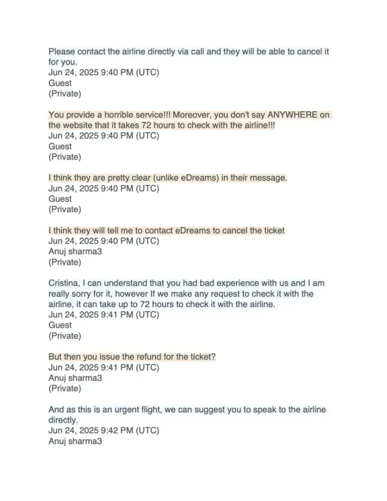 This was an absolute nightmare from start to finish. Everything about eDreams is bad: ⌠Call center: useless, unreachable, or agents give wrong information ⌠Chat service: slow, automated replies, no real help ⌠Refund process: terrible, confusing, and feels intentionally delayed ⌠Transparency: hidden charges and misleading “Primeâ€...